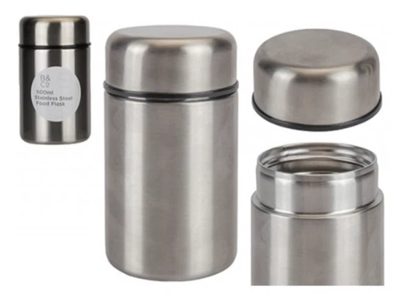 Traditional stainless steel flask to keep fluids cold and hot.