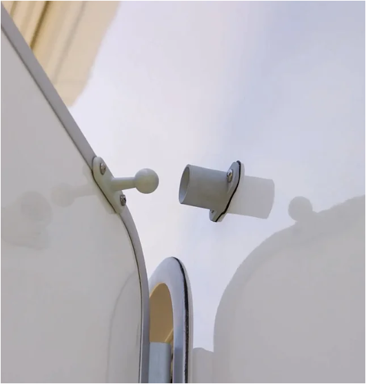 Keeps the door open while loading, unloading, or enjoying ventilation.
