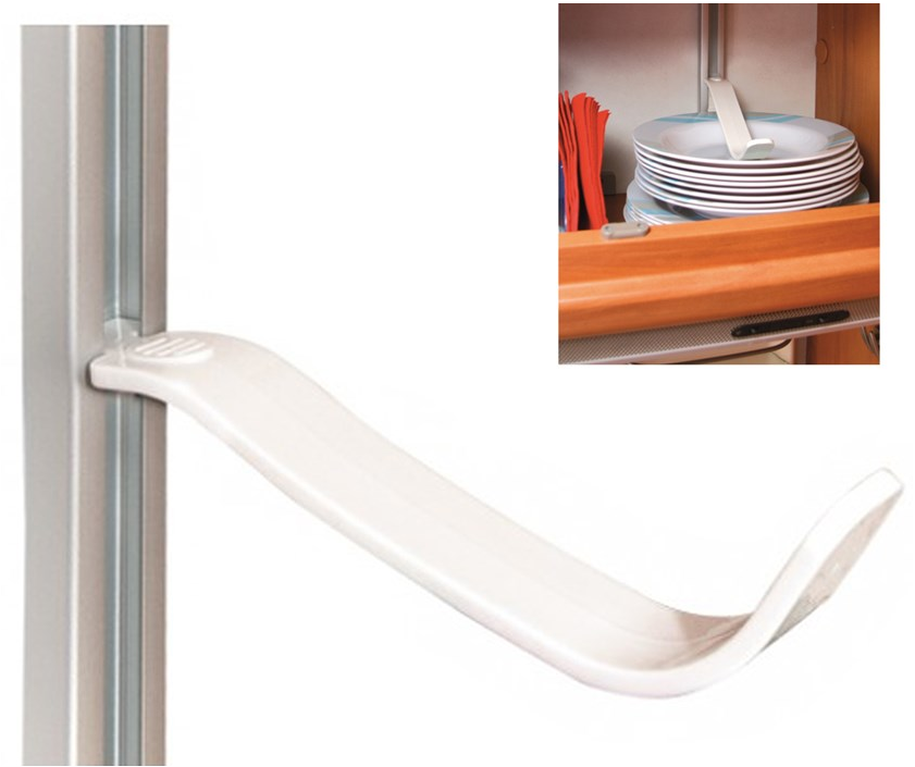 The Omnistop is used to secure plates, dishes, or other items inside cupboards or shelves while the vehicle is in motion, preventing them from sliding or falling.